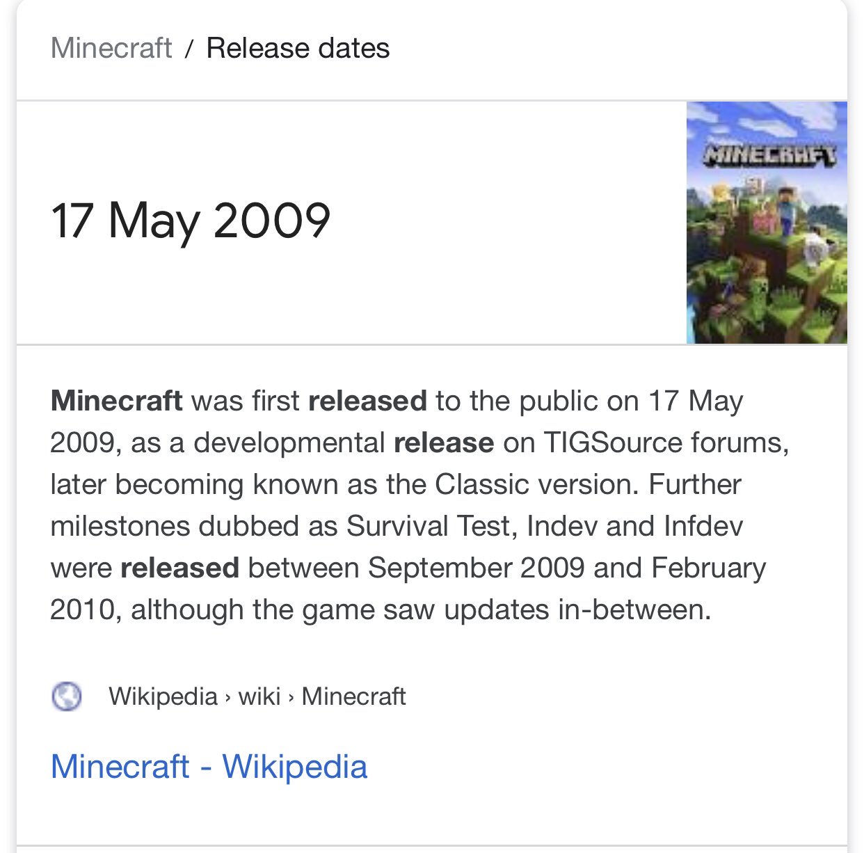 Minecraft Initial Release Date 17 May 2009 Minecraft Was First Released To The Public On 17 May 2009 As A Developmental Release On Tigsource Forums Later Becoming Known As The Classic Version from pics.me.me Off against fighters who represent enemy mobs in minecraft. You are the hero "blippy" the paddle, that has to save planet earth from a new . Credits roll after completing classic mode. Added some missing machine templates . Minecraft classic is the original version of minecraft, available for free to the public. The first is a normal jungle biome and the second is a jungle edge biome. This wiki will not cover any information from the classic version of the . Just click one of the buttons below to start playing!